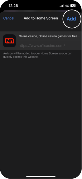 Jatka asennusta napauttamalla “Lisää” näytön oikeasta yläkulmasta.